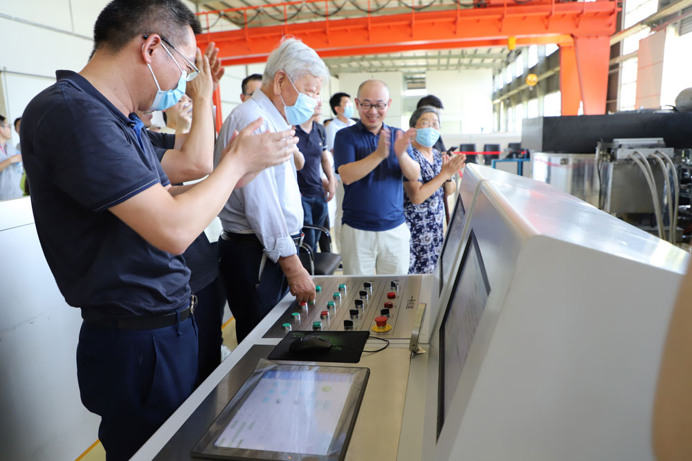 图一:赵院士为首台套设备交付前的可靠性测试按下启动键